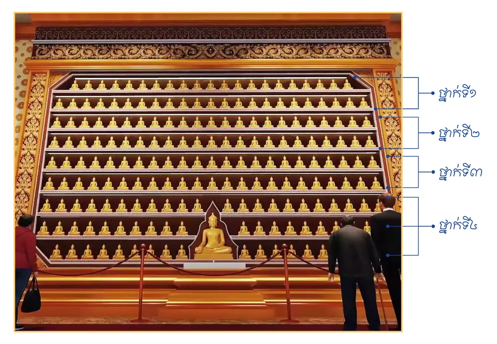 * ឈ្មោះសប្បុរសជន ដែលបានជាវព្រះពុទ្ធប្បដិមានឹងត្រូវចារឹកនៅផ្នែកខាងមុខនៃបល្ល័ង្កព្រះអង្គ។